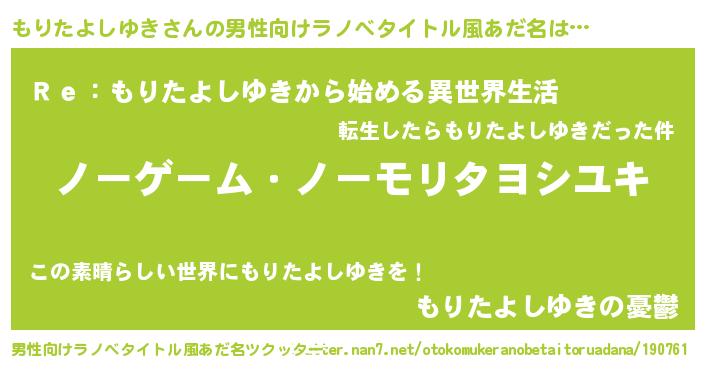 | 女子向けラノベタイトル風あだ名 | 『死神もりたよしゆきの再婚』 |