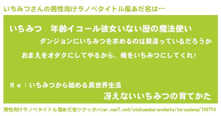 | ヒーロー風カッコイイあだ名 | 『正義の使者いちみつ』『魔戒騎士イチ』 |