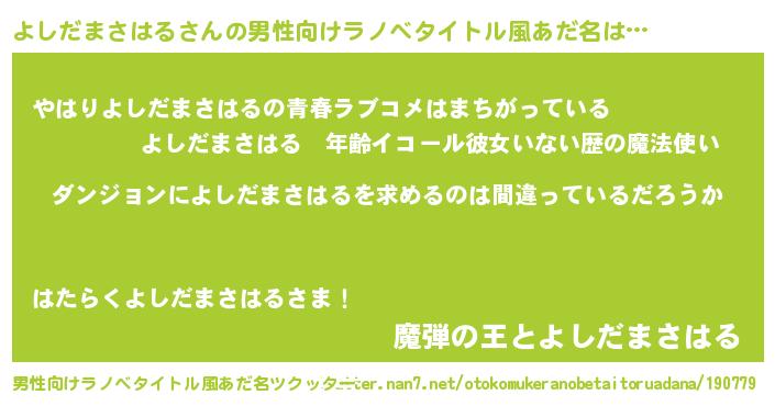 | 女子向けラノベタイトル風あだ名 | 『よしだまさはるは平凡を望む』 |