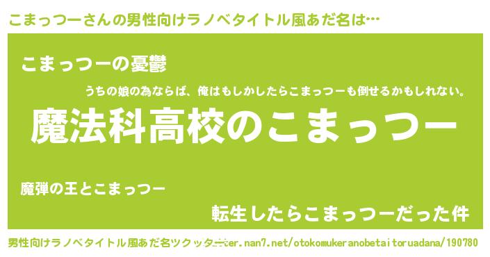 | 意味不明あだ名 | 『自称こまっつー』『ペロリンこまっつー』 |