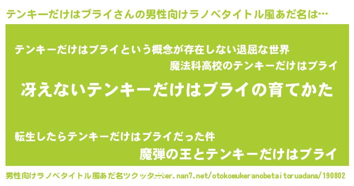 | 胡散臭い通販商品みたいなあだ名 | 『来世でも幸せになれる招き猫…その名も「テンキーだけはブライ」』 |
