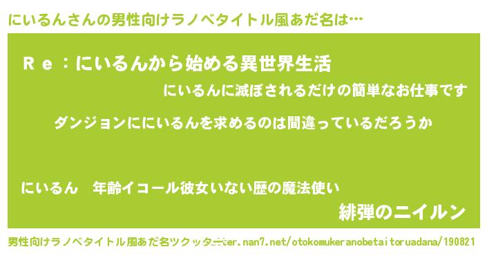 | ヒーロー風カッコイイあだ名 | 『魔戒騎士ニイ』『超時空戦士ニイルン』 |