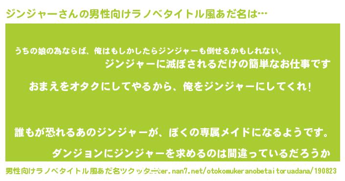 | ヒーロー風カッコイイあだ名 | 『正義の使者ジンジャー』『魔戒騎士ジン』 |