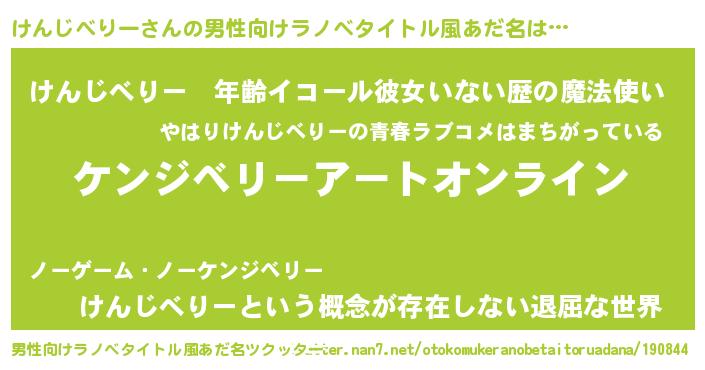 | 女子向けラノベタイトル風あだ名 | 『けんじべりー姫と円卓の騎士』 |