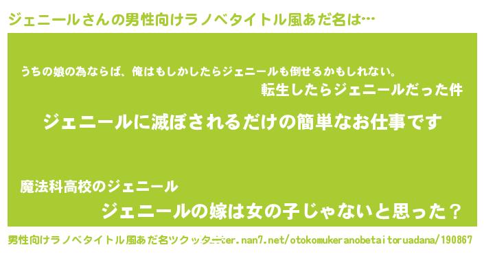 | 胡散臭い通販商品みたいなあだ名 | 『運命の人と巡り会える高級そうな壺…その名も「ジェニール」』 |