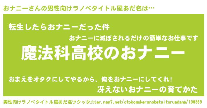 | 女子向けラノベタイトル風あだ名 | 『おナニーなんてお断りですっ。』 |