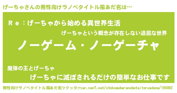 | ヘコむあだ名 | 『げーちゃ(笑)』『げーにー』 |