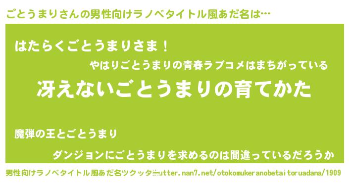 | 女子向けラノベタイトル風あだ名 | 『男装ごとうまりの憂鬱な任務』 |