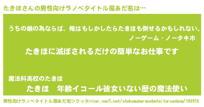 | 意味不明あだ名 | 『たきほフォーエバー』『自称たきほ』 |