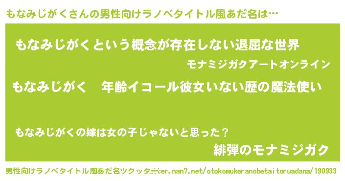 | ヒーロー風カッコイイあだ名 | 『ネオモナミジガク』『暗黒騎士モナ』 |