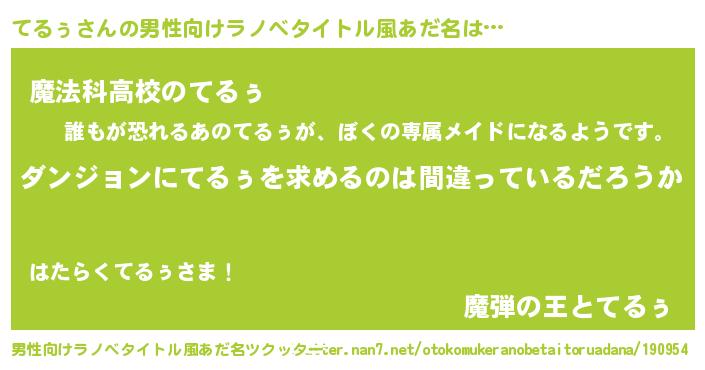 | 意味不明あだ名 | 『とにかく怪しいてるぅ』『自称てるぅ』 |