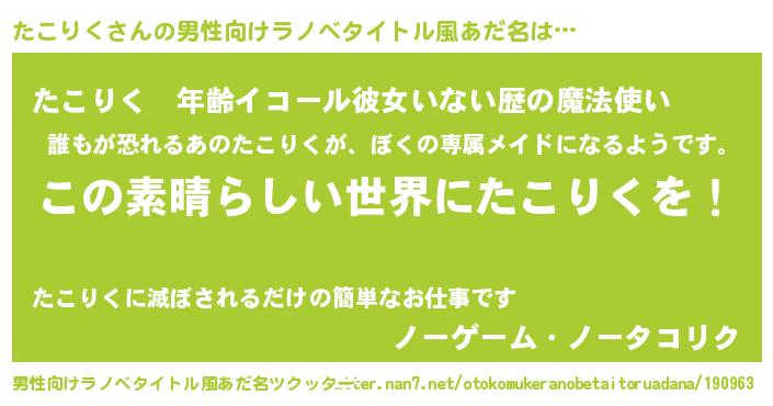 | 意味不明あだ名 | 『住所不定無職たこりく(68歳)』 |