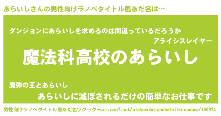 | ヒーロー風カッコイイあだ名 | 『超時空戦士アライシ』『黄金騎士アラ』 |