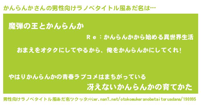 | 女子向けラノベタイトル風あだ名 | 『かんらんか夫妻のなれそめ』 |
