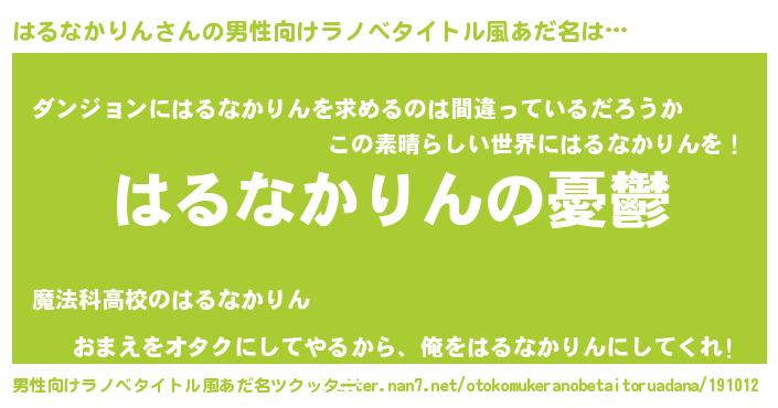 | 女子向けラノベタイトル風あだ名 | 『(仮)はるなかりんのやんごとなき事情』 |