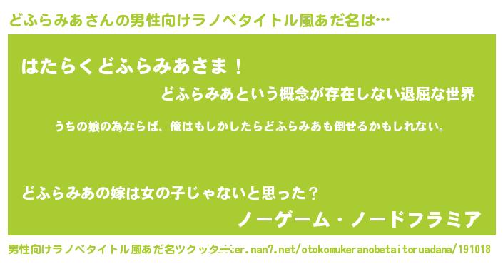 | 女子向けラノベタイトル風あだ名 | 『どふらみあの婚約者』 |