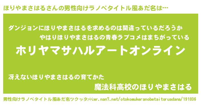 | 女子向けラノベタイトル風あだ名 | 『誰かこのほりやまさはるを説明してください! ~契約から始まるウェディング~』 |