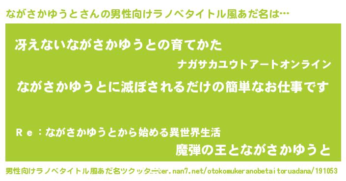 | 胡散臭い通販商品みたいなあだ名 | 『あなたにだけ特別に提供する限定10本のレアな日本酒…その名も「ながさかゆうと」』 |