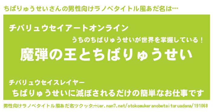 | 女子向けラノベタイトル風あだ名 | 『乙女ゲームの破滅フラグしかない悪役ちばりゅうせいに転生してしまった…』 |