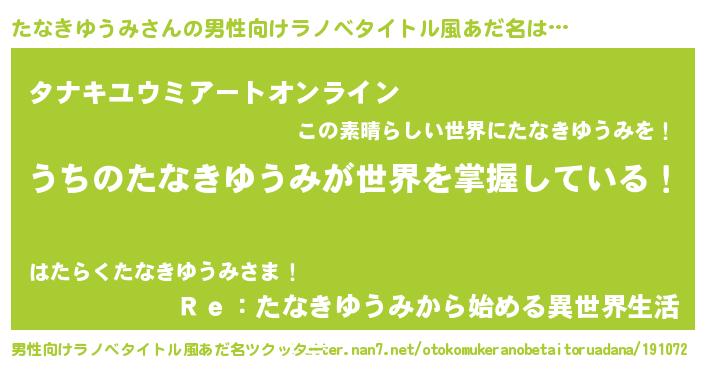 | 肩書あだ名 | 『たなきゆうみ船長』『たなきゆうみ閣下』 |