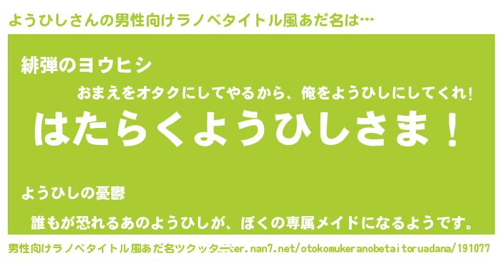 | ヘコむあだ名 | 『ようひし(笑)』『ようっふぃ~』 |