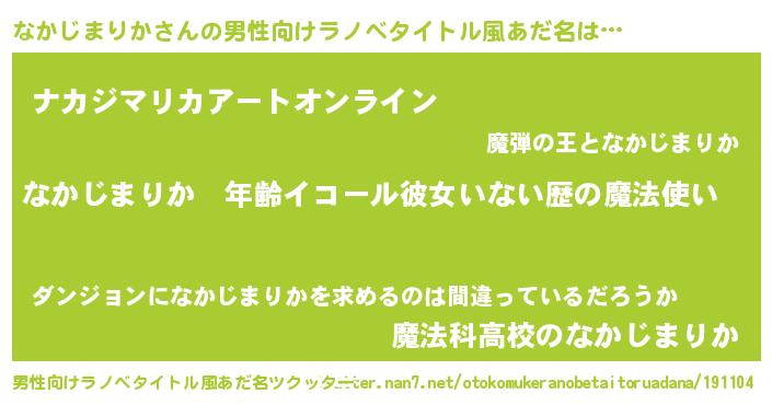 | 胡散臭い通販商品みたいなあだ名 | 『億万長者になれる水晶球…その名も「なかじまりか」』 |
