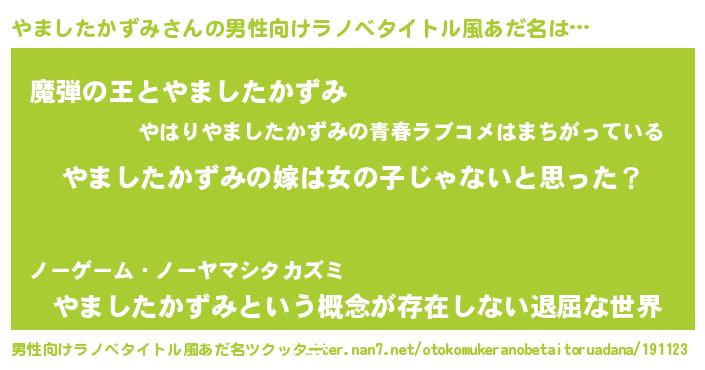 | 女子向けラノベタイトル風あだ名 | 『やましたかずみの卵を拾いまして』 |