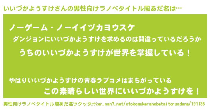 | 伝説のあだ名 | 『救世主となる錬金術士いいづかようすけ』 |