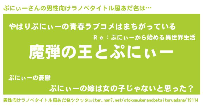 | 女子向けラノベタイトル風あだ名 | 『ぷにぃーが死なない童話 林檎のぷにぃーの診療簿』 |