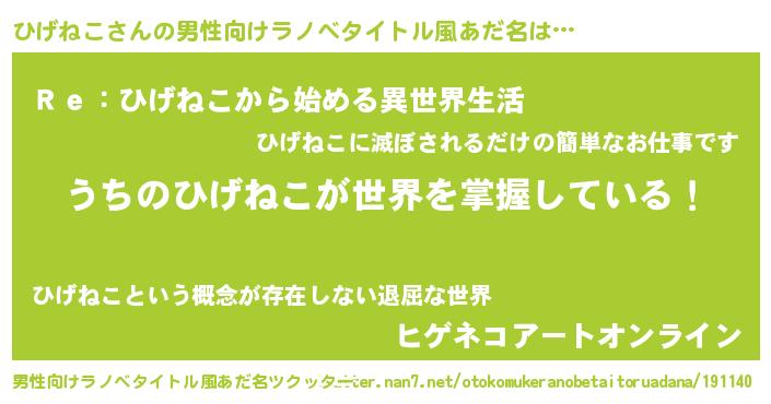 | 胡散臭い通販商品みたいなあだ名 | 『芸能人もオススメする高麗人参…その名も「ひげねこ」』 |