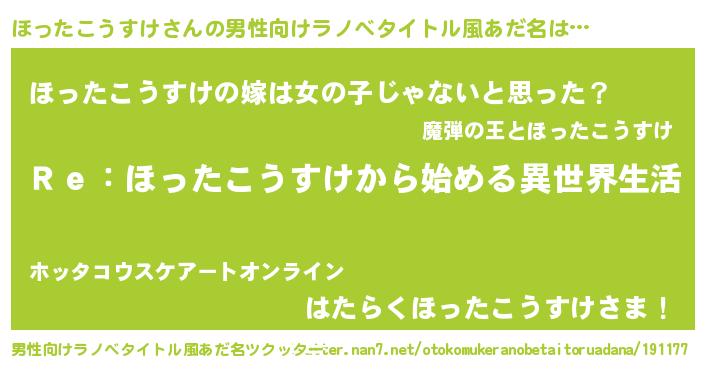 | 女子向けラノベタイトル風あだ名 | 『ほったこうすけストレイドッグス』 |