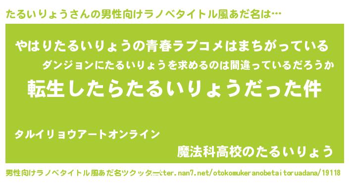 | 料理風あだ名 | 『たるいりょうごはん』 |