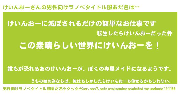 | 胡散臭い通販商品みたいなあだ名 | 『世界中を虜にした世界で10本だけ現存している希少なブランデー…その名も「けいんおー」』 |
