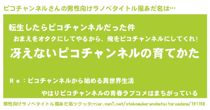 | 胡散臭い通販商品みたいなあだ名 | 『世界が平和になる高級そうな皿…その名も「ピコチャンネル」』 |