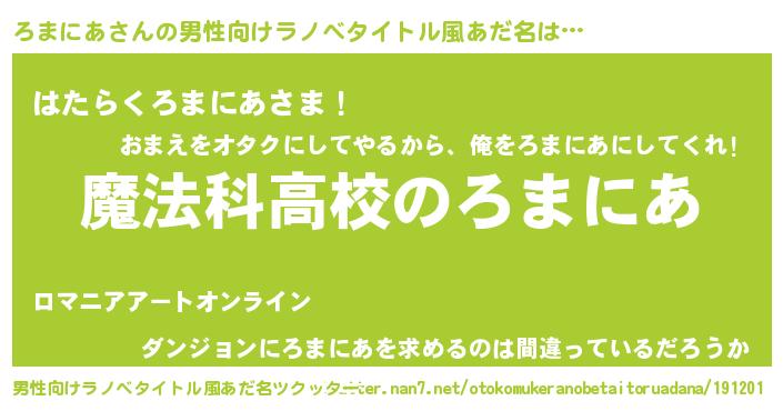 | 女子向けラノベタイトル風あだ名 | 『ろまにあなんてお断りですっ。』 |