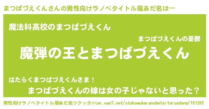 | 女子向けラノベタイトル風あだ名 | 『乙女ゲームの破滅フラグしかない悪役まつばづえくんに転生してしまった…』 |