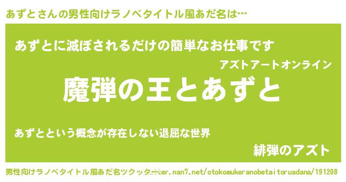 | 意味不明あだ名 | 『住所不定無職あずと(39歳)』 |