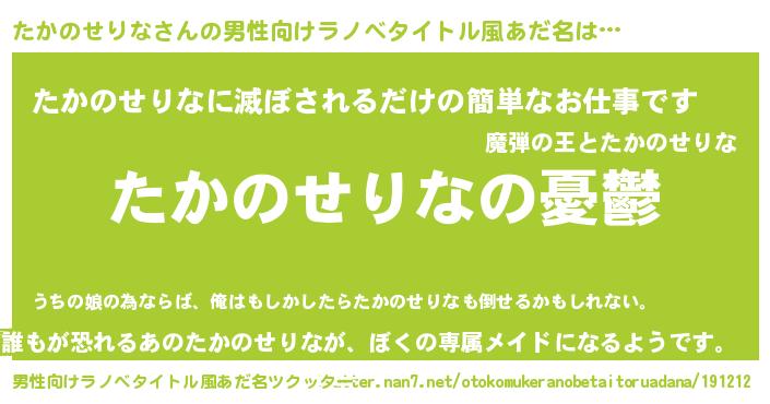 | 胡散臭い通販商品みたいなあだ名 | 『モテモテ間違いなし水晶球…その名も「たかのせりな」』 |