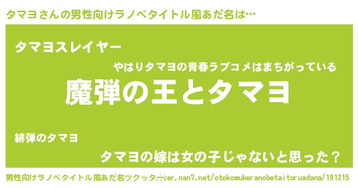 | 意味不明あだ名 | 『住所不定無職タマヨ(10歳)』 |