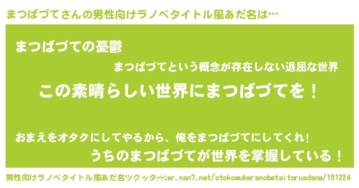 | 意味不明あだ名 | 『住所不定無職まつばづて(47歳)』 |