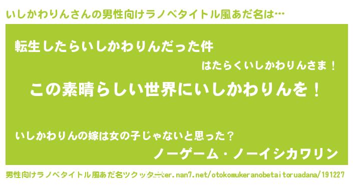 | 女子向けラノベタイトル風あだ名 | 『悪役いしかわりんに転生したようですが、知った事ではありません』 |
