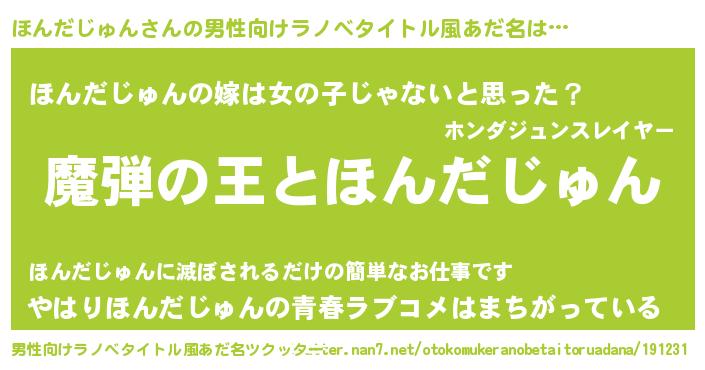 | 意味不明あだ名 | 『住所不定無職ほんだじゅん(86歳)』 |