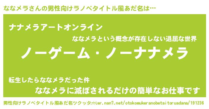 | 女子向けラノベタイトル風あだ名 | 『ななメラ恋絵巻』『ななメラの契約王妃』 |