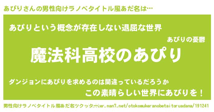 | 女子向けラノベタイトル風あだ名 | 『あぴりアンティーク』 |