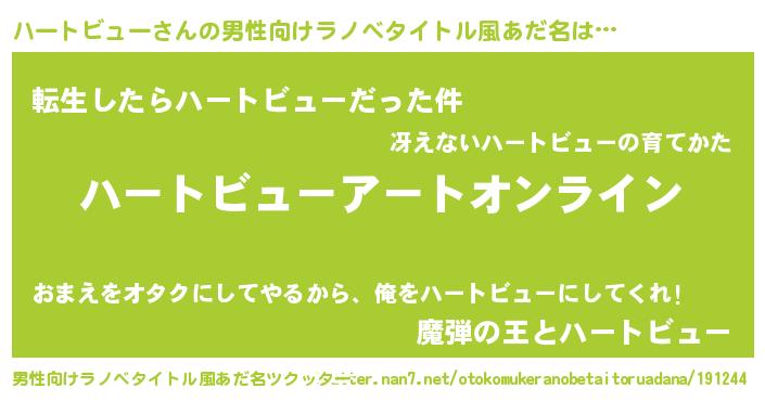 | 胡散臭い通販商品みたいなあだ名 | 『億万長者になれる霊験あらたかなお札…その名も「ハートビュー」』 |