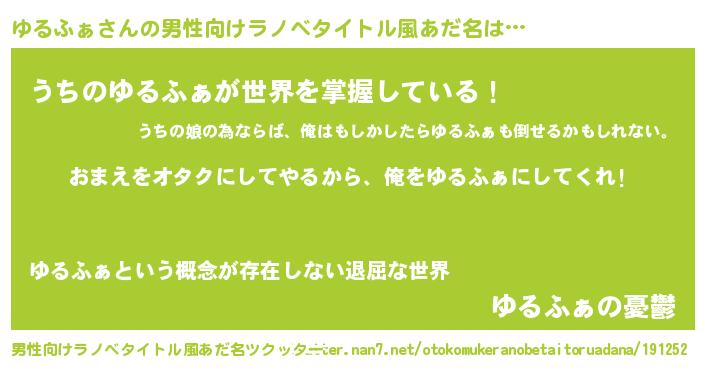 | 胡散臭い通販商品みたいなあだ名 | 『100人中100人が認めたマグネット磁石…その名も「ゆるふぁ」』 |