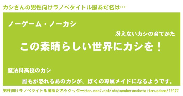 | 意味不明あだ名 | 『住所不定無職カシ(39歳)』『永久保存カシ』 |