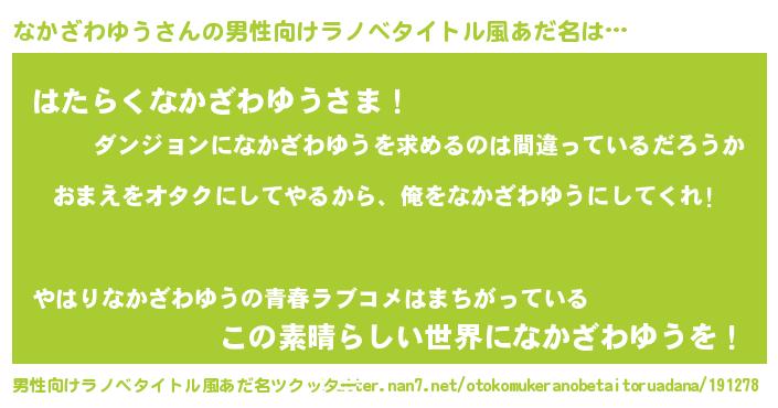 | 女子向けラノベタイトル風あだ名 | 『なかざわゆう夫妻のなれそめ』 |