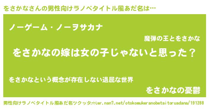 | 女子向けラノベタイトル風あだ名 | 『をさかな様がみてる』 |