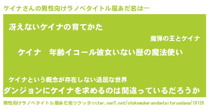 | 女子向けラノベタイトル風あだ名 | 『ケイナの玉の輿計画!』 |